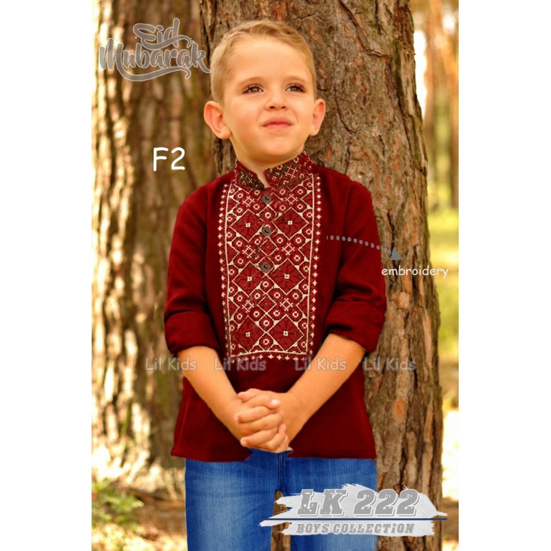 LK-F222-F2 Maroon Embroidery Koko Set Jeans