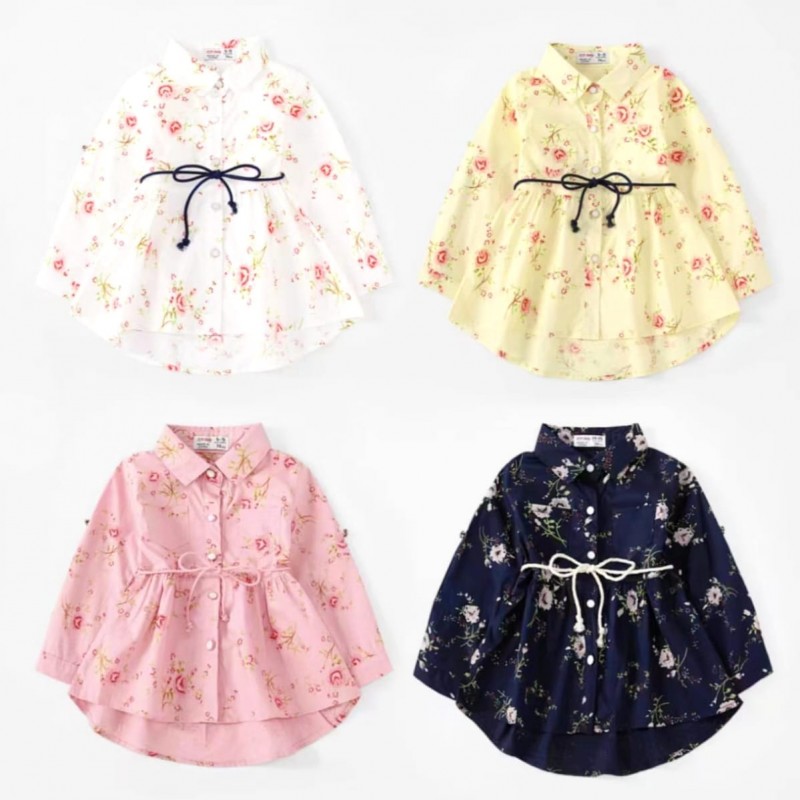 Pink Floral Long Sleeve Tunic With Belt View larger