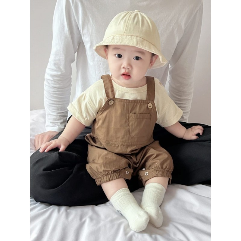 Korean Cream Top Set Brown Overalls