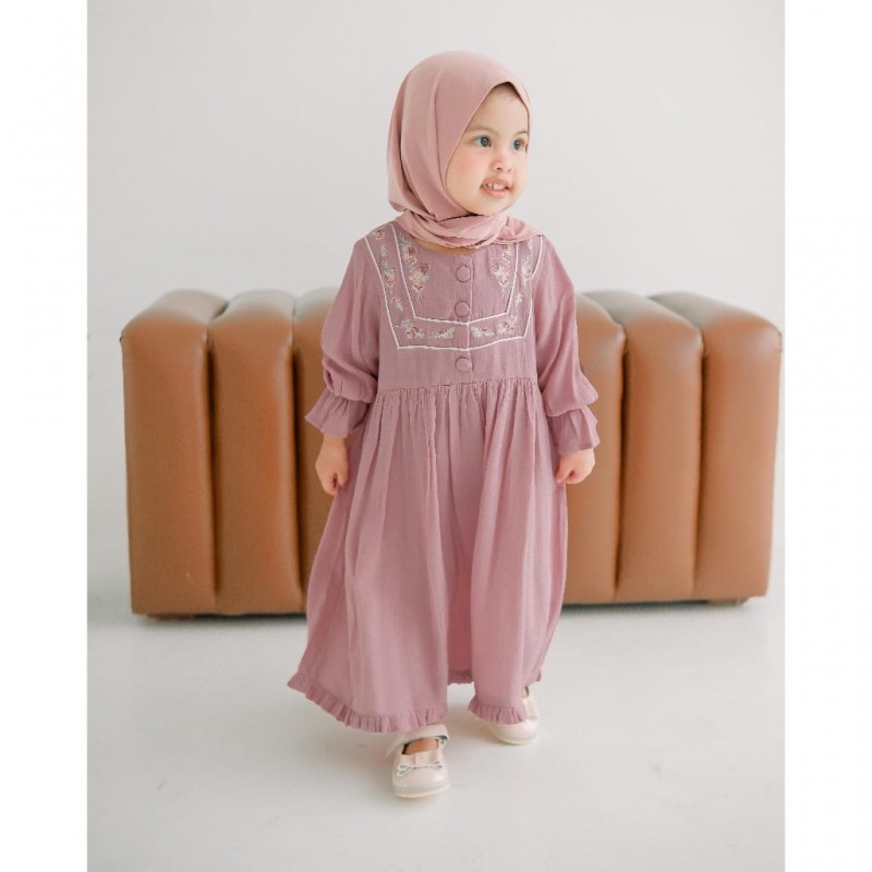 Pink U Shape Floral Embroidery Gamis