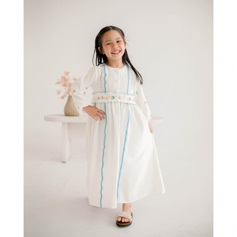 White Two Line Embroidery Belt Gamis