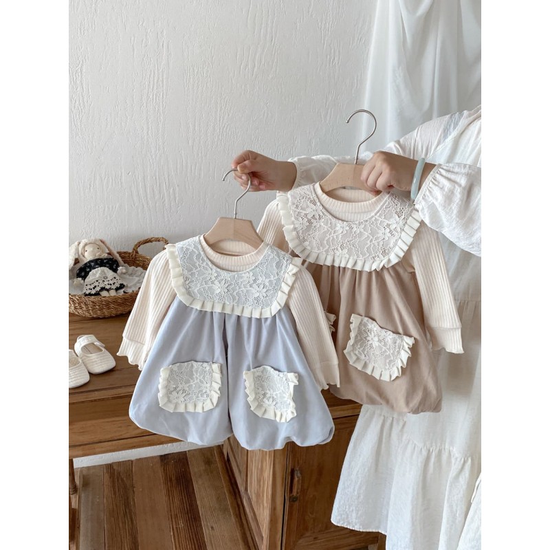 Brown Sweet Ribbed Lace Dress